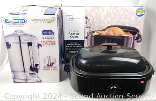 Lot #0295: DeLonghi Ultimate Coffee Urn & Mainstays 14qt Roaster Oven