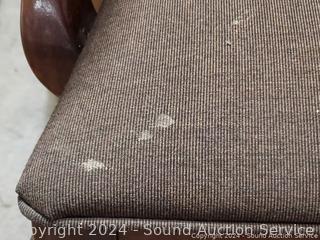 39.5" H x 27" W x 18" to seat. Some scuffs, wear to finish.