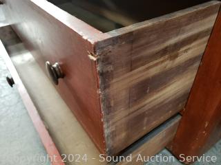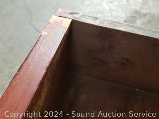 All wood construction. Various scuffs, wear to finish. 29.5" H x 47.5" W x 18.25" W.