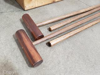 Lot #0300: Wood Crate w/4 Hardwood Croquet? Polo? Mallets