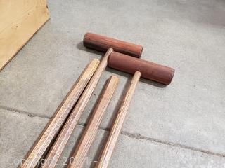 Mallets are very well made, hardwood. 38" L x 9" x 2.25". 11" x 43.5" x 9.5" crate.