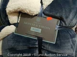 King is by Monte Jardin, 112" x 92". Throw is 60" x 70. Both need to be washed. Refer to photos for more information.