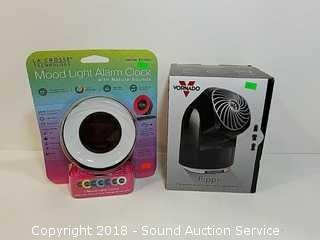 Lot #0181: Mood Light Alarm Clock & Flippi Personal Fan