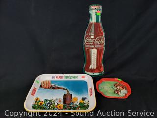 Lot #0228: 2 Coca-Cola Tin Tray's & Thermometer