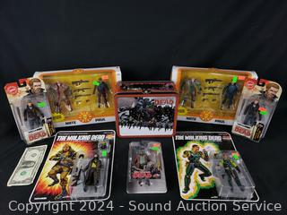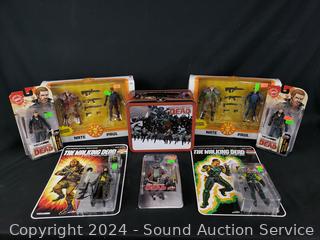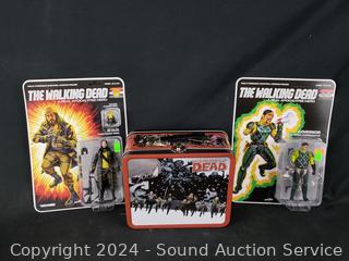 Lot #0302: 5 Walking Dead & 2 Die Action Figure Sets & Walking Dead Lunch Pail