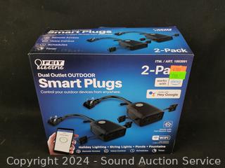 Lot #0268: 2pk Feit Dual Outlet Outdoor Smart Wifi Plugs