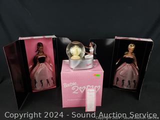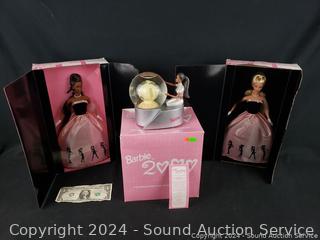 Lot #0193: Barbie Celebrating the New Year Snowglobe w/CoA & 2 Timeless Silhouette Barbies