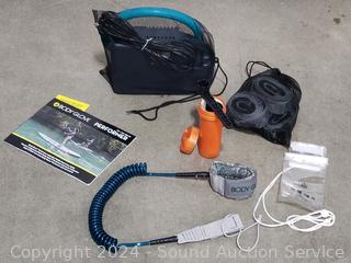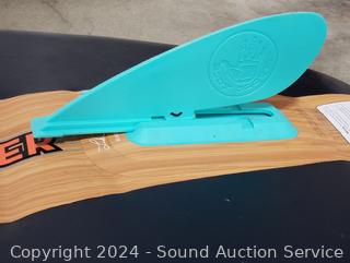 Some light wear from use. Appears to be holding Air comes with tether, paddle, pump, storage bag, waterproof containers, fin. Refer to photos for more details.