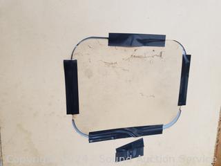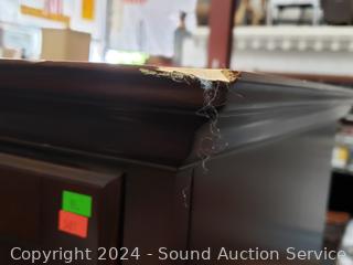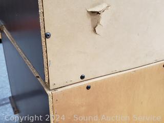 Single drawer, some minor scuffs, ships on edges/dings, back hole has been taped up (refer to photos). 74.75" H x 44.5" W x 24" D.