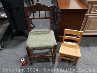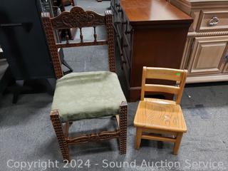 Lot #0285: Oak Child's Chair & Vintage Chair