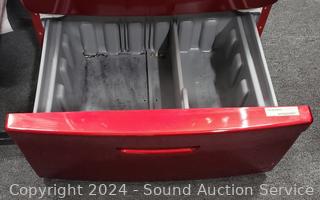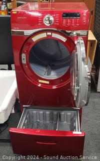 Lot #0002: Red Samsung Elec. Steam Clothes Dry w/Drawer Stand