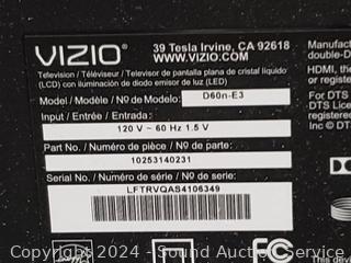 Lot #0090: Vizio 60" Flat Screen 1080p HDTV w/Remote & Wall Mount