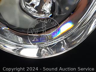 One with Baccarat water mark on the bottom, refer to photos. Other is unmarked. Approx. 10.5" to 10.75" tall.