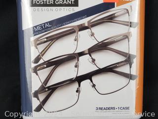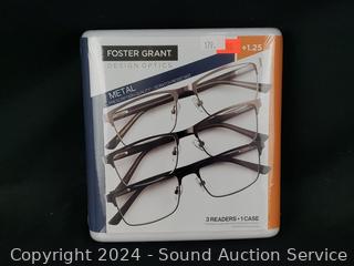 Lot #0179: 3 Foster Grant +1.25 Metal Reading Glasses w/1 Case