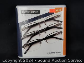 Lot #0188: 3 Foster Grant +1.25 Metal Reading Glasses w/1 Case