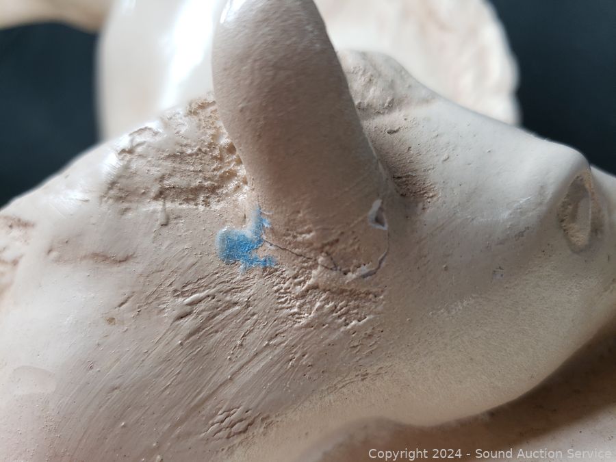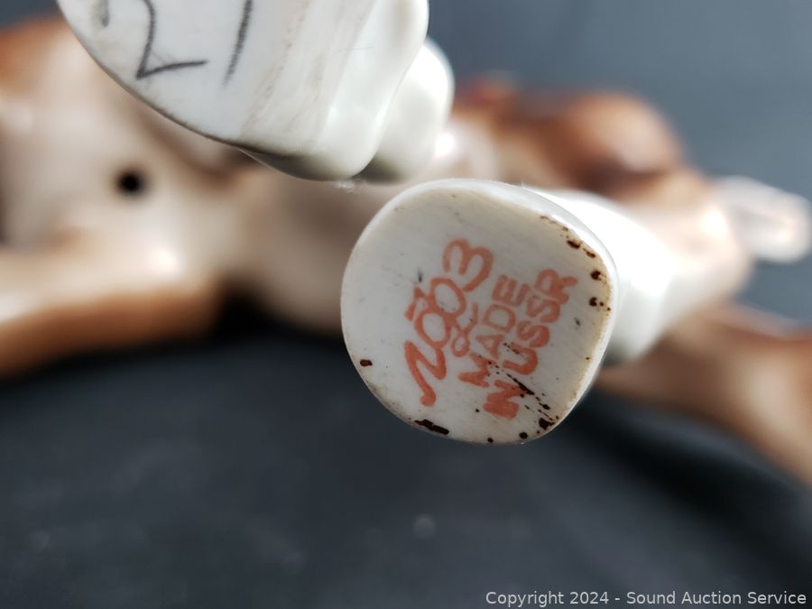 Large white one ear has been repaired, 1 has a repaired leg & tail faded Chinese mark, 1 is Goebel has a repaired foot, 1 has a USSR mark, don't see any issues. Approx. 8" to 10" tall, 8" to 17" long.