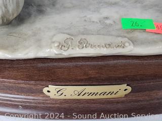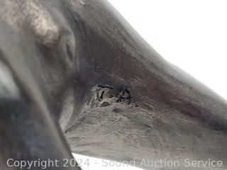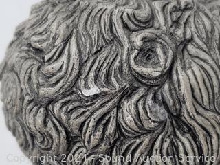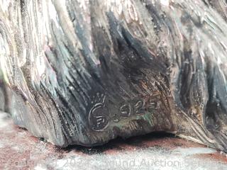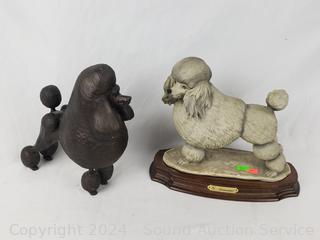 Sarnoff Art Sterling Silver Poodle mounted to Marble Slab 5" H x 7.5" x 4-7/8". G. Armani Signed Porcelain Poodle 8-5/8" H x 10" x 4". Lamp Workshop Fine Poodle Sculpture Churt, Surrey, England 4.5" H x 4" x 3.75". Tara signed Pottery Poodle Sculpture 8.75" H x 3.5" x 5", some minor knicks/dings. Bronze finish resin Poodle Sculpture, don't see any makers marks, 9" H x 8.5" x 3.5", some minor knicks/dings.