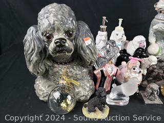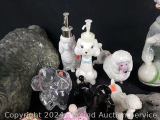 Ceramic statuary 11" H x 17" x 8.5", decanter, figures, soap pumps, etc. Refer to photos for more details.