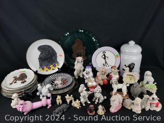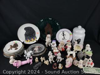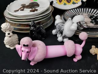 Lot #0031: Assorted Poodle Plates, Figures, Canister Decor