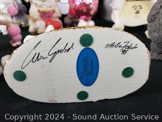 Various plates, collectors plates, porcelain/resin figures, 9" canister. See a few figures with signature, makers marks, Goebel. Don't see any major issues. Refer to photos for more details.