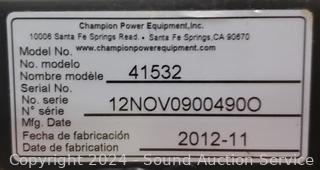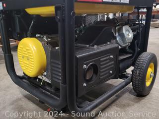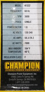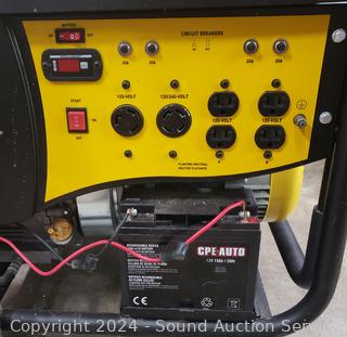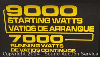 9000W starting watts, 7000 running watts. Tries to start with starting fluid, but can't get it to stay running, as is. 26" H x 27" x 21".