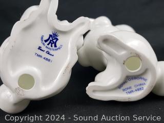 Up to 7.5" tall. Many with makers marks, Denmark, Lefton, Goebel, Maruri Masterpiece, Wade, J. Lau, Italy and more. Refer to photos for more details.