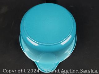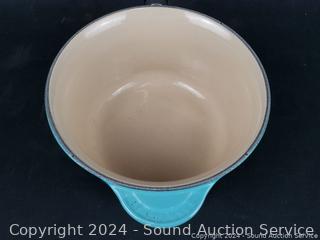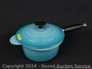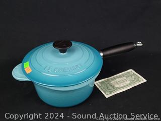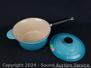 Lot #0114: La Creuset Teal Cast Iron Enamelware Saucepan w/Lid