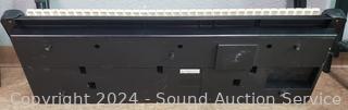 Pitch/Bend not functioning, stand won't latch in place needs a bolt. Comes with power supply. Some scuffs, wear from use. 38" x 14" x 4.5".