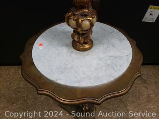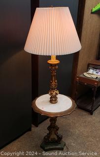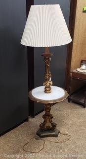 Lot #0196: Vintage Gold Gilt Side Table Floor Lamp
