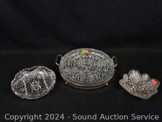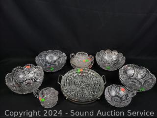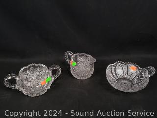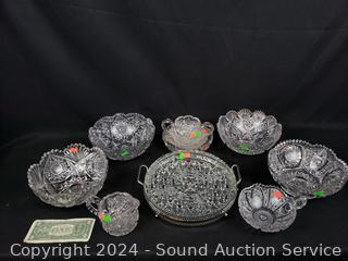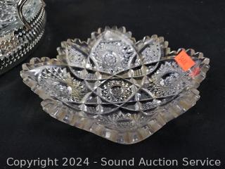 Lot #0136: 10pc Brilliant Cut Crystal Bowls, Cream/Sugar, Divided Dish