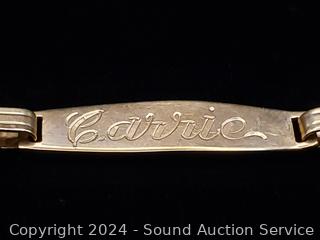 Marked 14K, held on acid test. Monogrammed "Carrie". TW:4.52g.