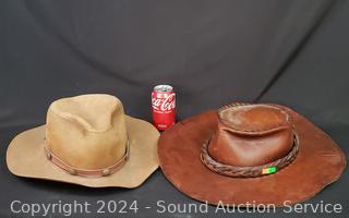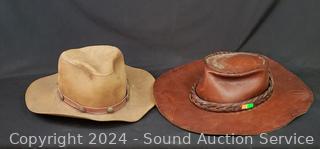 Lot #0233: 2 Leather Wide Brimmed Hats