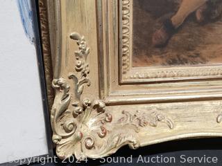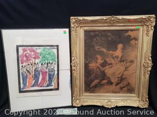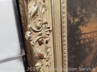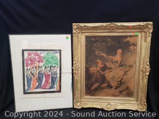 Lot #0023: Antique Gold Gilt Framed Print & Block Print