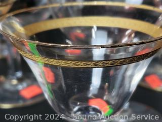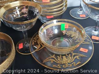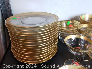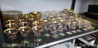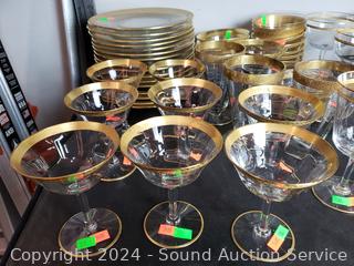 Lot #0138: Heavy Gold Trim Stemware, Snack Plates & Bowls