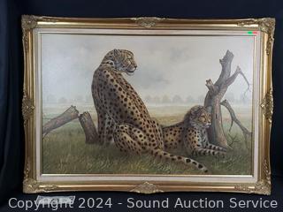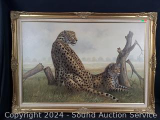 Lot #0028: Original Don Erdman Leopard Oil on Canvas Painting w/Gold Gilt Frame