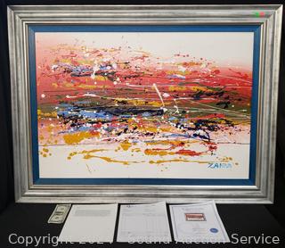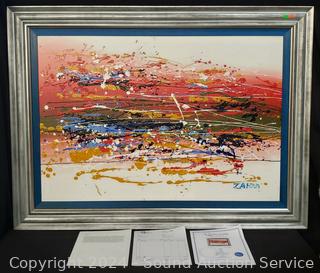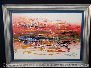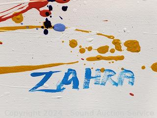 Lot #0026: Original Signed Zahra Abstract Oil on Canvas Painting w/Custom Frame