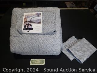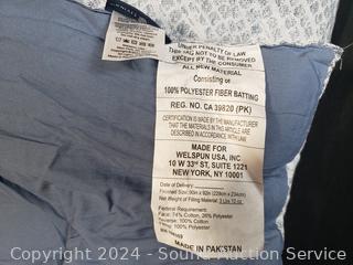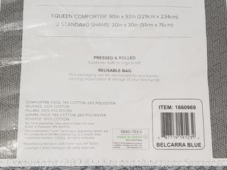 Belcarra Blue print. 1 comforter 90" x 92", 2 shams 20" x 30". Don't see any issues.