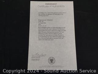 Comes with Park West CoA, Appraisal & artist information. Custome framed. Hand numbered & signed AP#127/150. 23.5" x 23.5". Tim Yanke is an American artist who uses the colors and culture of the Southwestern United States to create bold, rhythmic, and compelling art. Yanke is best known for abstract artwork, the depiction of dragonfly imagery, and his representations of the U.S. flag, known as “Yanke Doodles.” His artwork is collected around the world, with fans often lauding his artwork for the nostalgia it inspires.