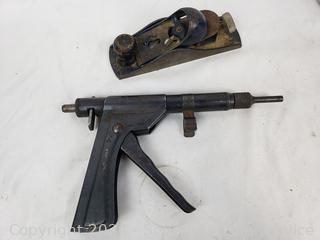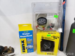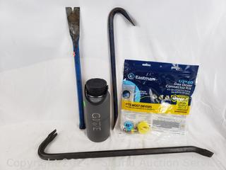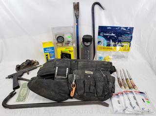 Crowbars, gauges, nylon tool bag, glass water repellent, plane, switch plate. Refer to photos for more details. Various wear from use.