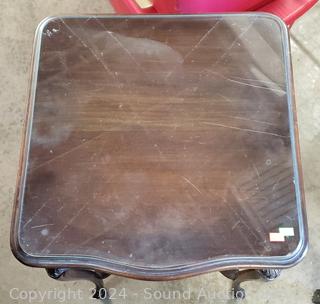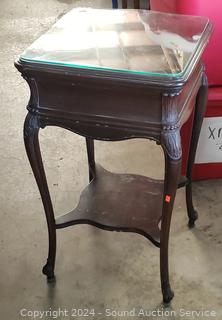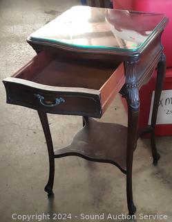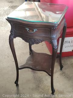 Lot #0063: Vintage Mahogany Single Drawer Glass Top Tall Table