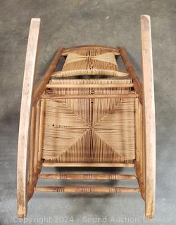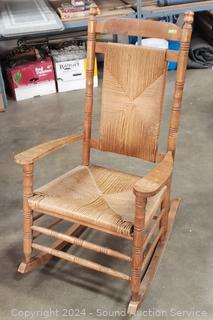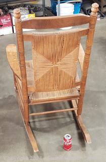 Lot #0038: Vintage Rush Woven Seat Oak Rocking Chair
