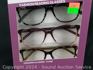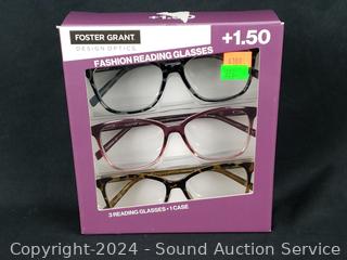Lot #0222: 3 Foster Grant +1.5 Fashion Reading Glasses w/1 Case