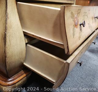Some scuffs, chips on the front edge. 27.5" H x 32" W x 16" D.