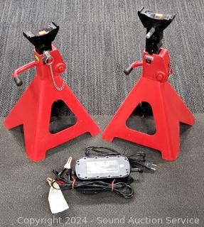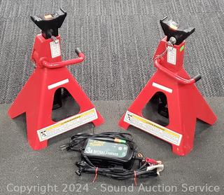Lot #0285: Carolina 6-Ton Jack Stands & 3 Amp Battery Charger