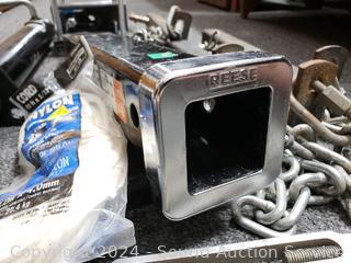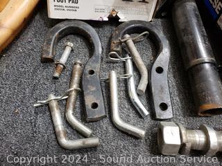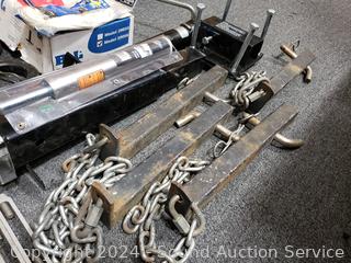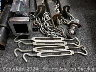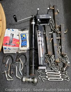 Unknown completeness, or if the parts are a tow bar, look like some parts fit a receiver, chains for lifting, I don't know. Trailer jack is 2000LB capacity. Appears to be functioning as intended, comes with a foot pad.