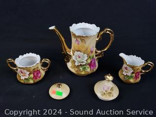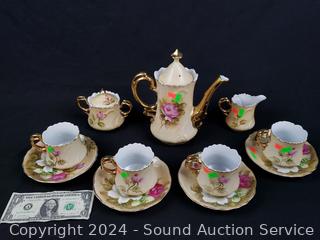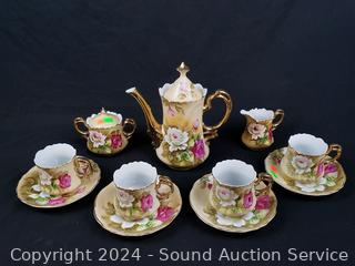 Lot #0174: 11pc Lefton Fine China Floral Gold Trim Tea Set