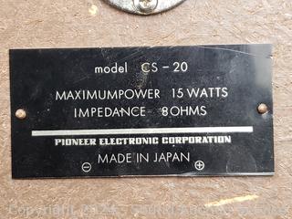 2 Pioneer CS-20 15W 13" H x 8" x 8", 2 Realistic MC-1000 17" H x 11" W x 8". Some cosmetic wear one all. All are putting out sound, one large unit has a scratchy sound.