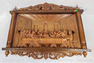 Lot #0162: 3D Wood Carved Jesus Last Supper Wall Decor