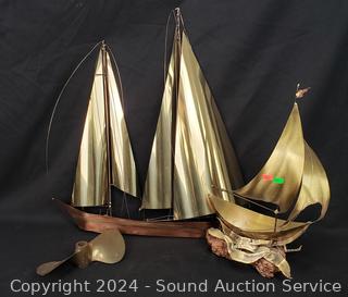Lot #0128: 3pc Brass Ship, Nautical Decor