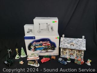 "Cumberland House", "Winter Playground", "Rest Ye Merry Gentleman", "Lot 56 Christmas Court" assorted figures, accessories. 4 in original packaging.